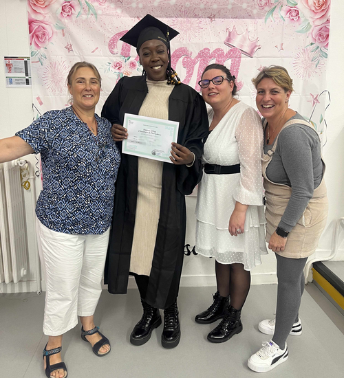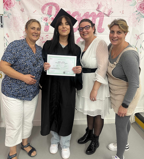 Élève auxiliaire de puériculture diplômée accompagnée des formatrices